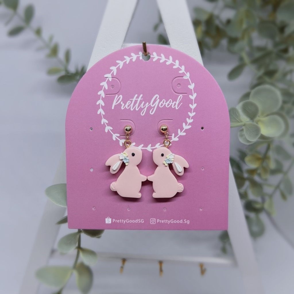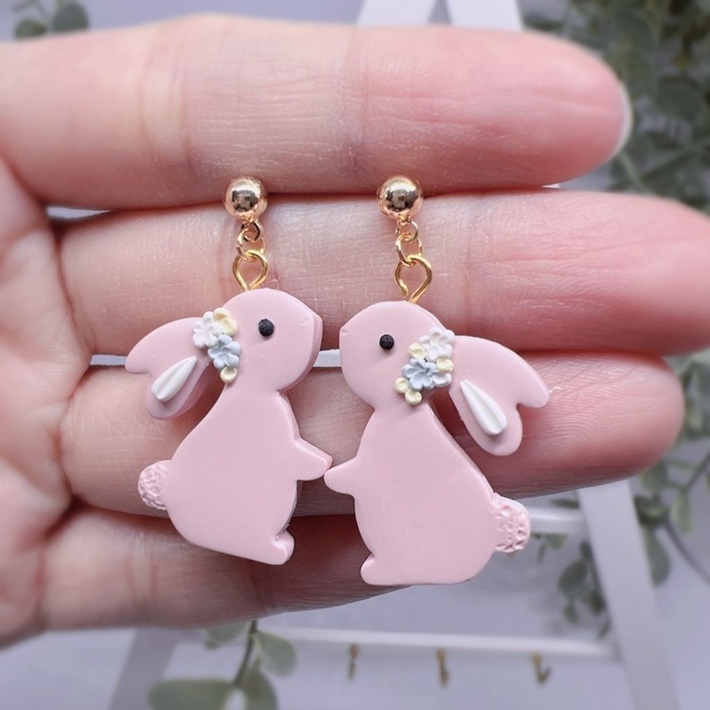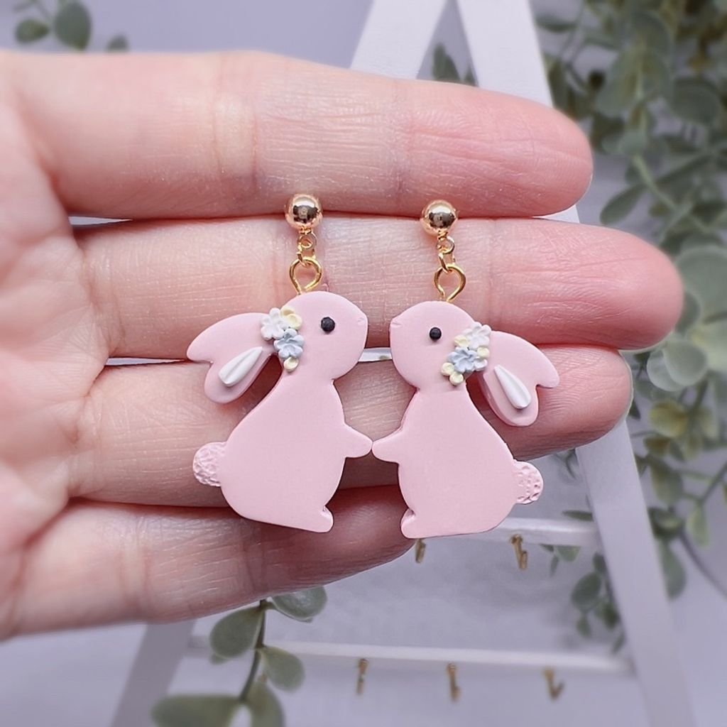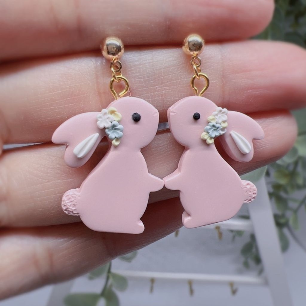 #handmade-earrings #make-to-order #rabbit-earrings #cute-bunny-earrings #floral-earring #durable-clay-earrings #elegant-earrings #pastel-earrings #simple-earrings #kawaii-earrings