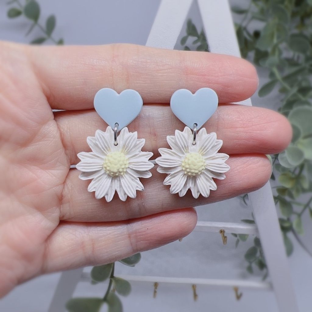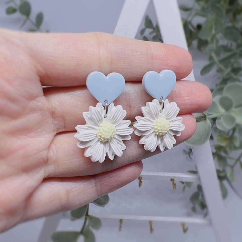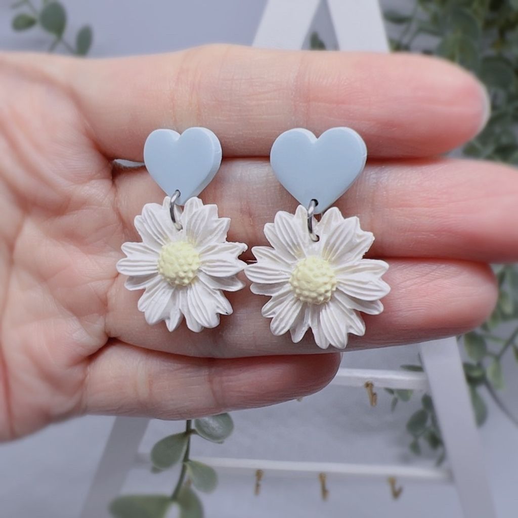 #handmade-earrings #make-to-order #floral-earrings #daisies-earrings #white-daisies-earring #durable-clay-earrings #love-push-back-earrings #white-floral-earrings #simple-earrings #chic-earrings