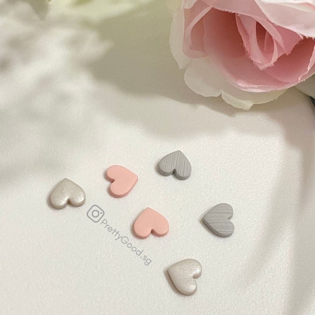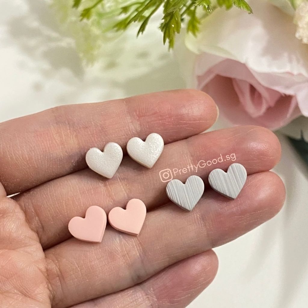 Heart Studs - πŸ‡ΈπŸ‡¬ Handcrafted in SG | Small Heart Earrings | Love Earrings | Bridal Colors Earrings | Pink Grey Glittery