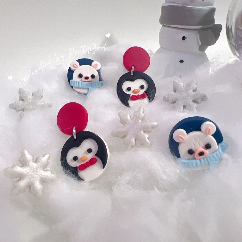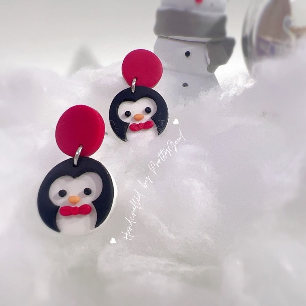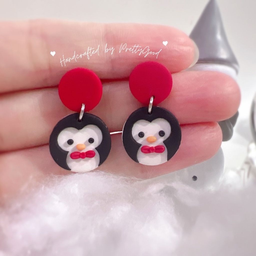 #handmade-earrings #make-to-order #penguin-earrings #cute-penguin-earrings #winter-earring #durable-clay-earrings #xmas-earrings #small-stud-earrings #simple-earrings #kawaii-earrings