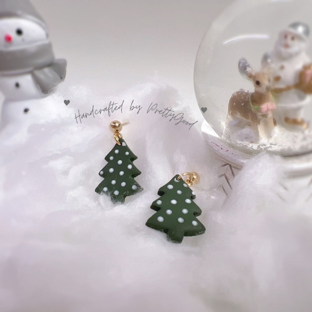 #handmade-earrings #make-to-order #xmas-tree-earrings #xmas-earrings #christmas-tree-earring #durable-clay-earrings #latte-stud-earrings #green-xmas-tree-earrings #simple-earrings